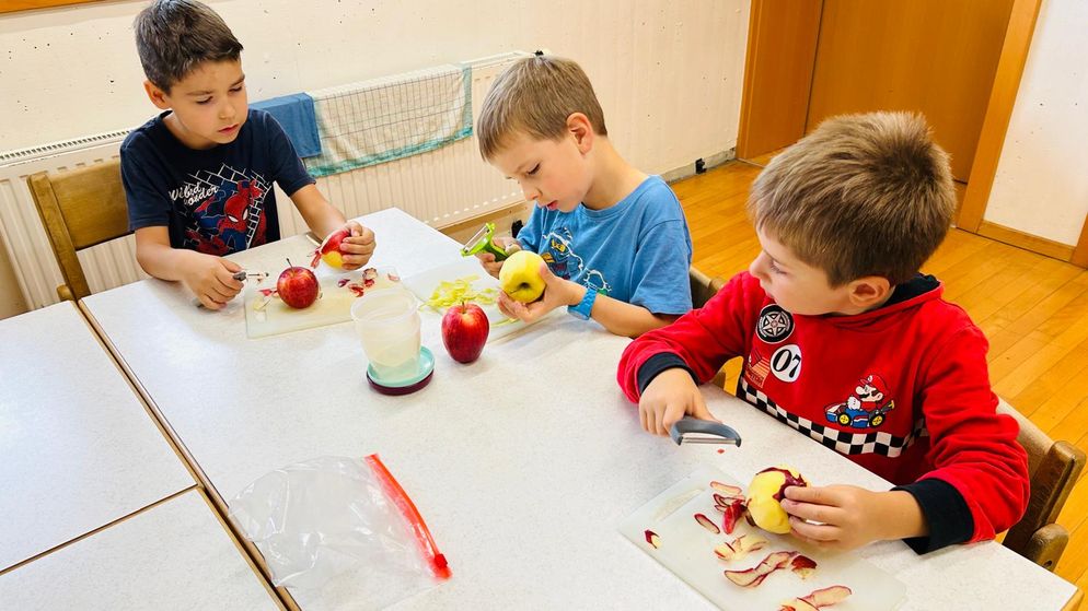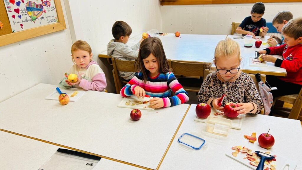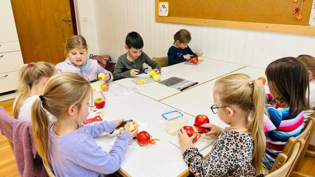 Die Kinder der 1a lernten in dieser Woche über Obst. Viel Freude bereitete ihnen dabei das Kochen von Apfelkompott. Dies war so gut gelungen, dass alles aufgegessen wurde. Lecker!