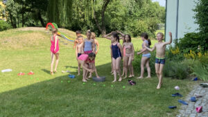 Wasserspiele im Schulgarten an den extrem heißen Tagen waren für die Kinder der 2a-Klasse eine erfrischende Abwechslung zum Schulalltag.