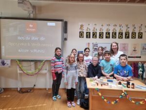 Im Rahmen des Projekts Apo@school durften die Schülerinnen und Schüler der 3. und 4. Klassen den Beruf und die Tätigkeiten einer Apothekerin bzw. eines Apothekers näher kennenlernen.