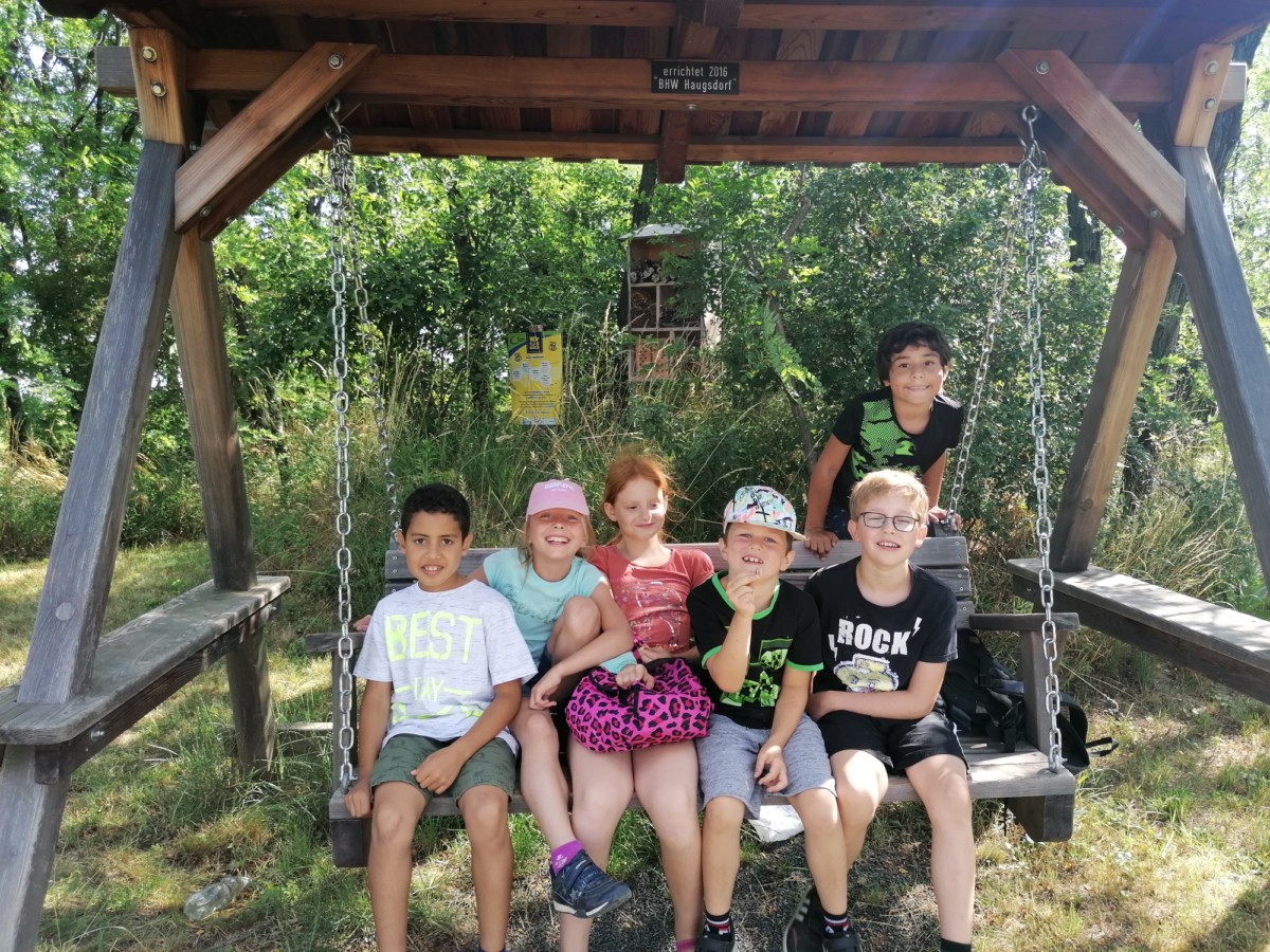 Am 30.6. wanderten die Kinder der 2b zusammen mit ihrer Lehrerin Frau Hofbauer zum Hutberg. Über die kleine Kellergasse ging es, von der Schule weg, zunächst hinauf zum Freiheitskreuz. Dort genossen wir die schöne Aussicht über Haugsdorf ehe es zur Rast am Hutberg ging. Dort angekommen wurde ordentlich gejausnet und gerastet ehe es über die große Kellergasse zurück in den Ort ging. Beim Spielplatz legten wir noch einen Stopp ein um noch ein wenig Bewegung zu machen. Mittags kamen wir dann erschöpft aber dennoch zufrieden bei der Schule wieder an.