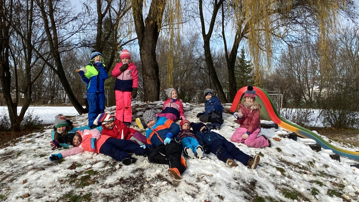 Ende November fiel zur Freude aller Kinder der erste Schnee und so verbrachten die Kinder der 1a einige Turnstunden im Freien, wo der Schnee zwar stellenweise unter den Füßen der Kinder verschwand aber den SchülerInnen trotzdem viel Spaß bereitete.